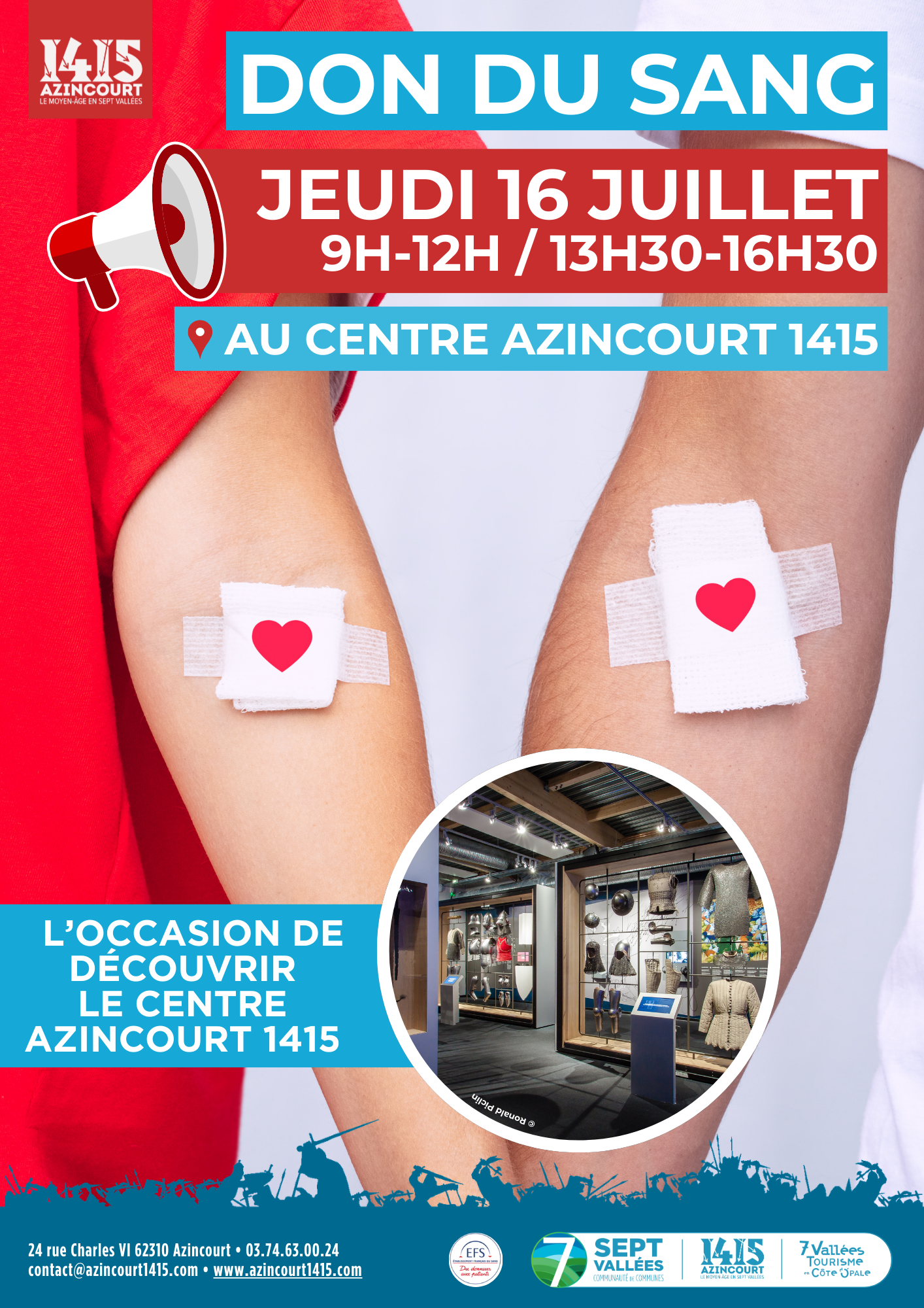 Pendant les mois de juillet et août au Centre « Azincourt 1415 », les horaires sont étendus de 10h00 à 18h30, avec le dernier accueil à 17h30.